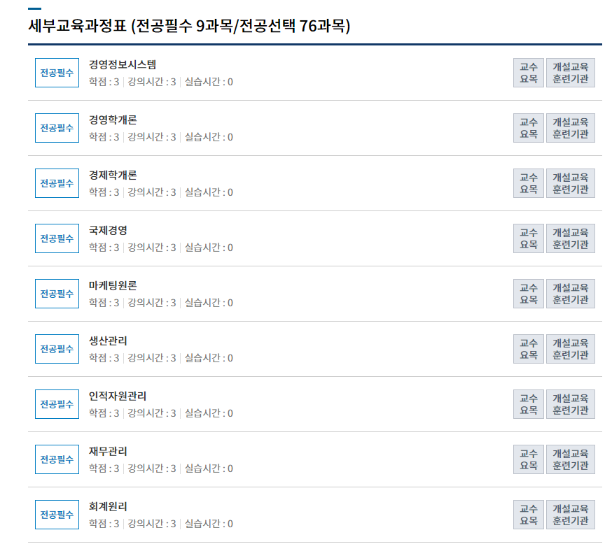 하지만 학점은행제 수강신청 전, 희망하는 전공에 따라 수강해야 하는 교과목들이 정해져있고, 교육원에 따라 개설되어 있는 과목들도 다릅니다.